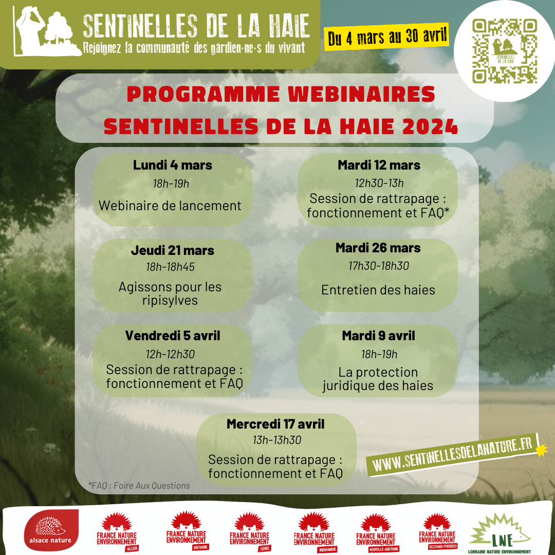 Tout au long de cette campagne, plusieurs rendez vous sont proposés afin de sensibiliser, informer sur la préservation des haies et expliquer le fonctionnement de la campagne. Un webinaire par semaine sera organisé par les associations du mouvement FNE. Entretien, réglementation, ripisylves... l'objectif est de balayer un maximum de sujets: